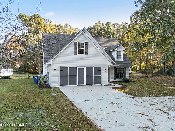 Located close to Cherry Point, Welcome to your Havelock oasis that hosts 4 bedrooms and 2 and a half bathrooms on 1.31 acres with a screened in garage for those starry nights. Through the front door you are greeted with an open concept and vaulted ceilings, the formal dining room is to your right and allows natural light to come in. With the open concept, entertaining while cooking and watching TV are seamless. You'll also find a screened in back porch that welcomes you to the large fenced back yard. This home does not disappoint, call for you private showing today!