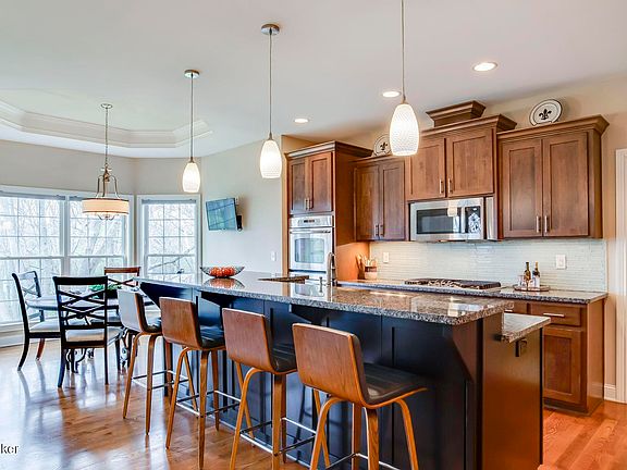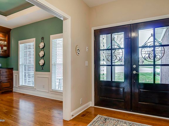 Discover timeless elegance and modern comfort in this stunning brick & stone walkout ranch, nestled on a serene 1.6-acre lot in the established Kingsmill neighborhood. Surrounded by mature trees, a gentle creek, and beautifully maintained professional landscaping with concrete curbing, this home offers the perfect blend of privacy and convenience. Boasting over 4,100 sq ft of finished living space, this 4-bedroom, 3.5-bath residence is designed for both everyday living and effortless entertaining. The main floor features rich hardwood floors, a spacious living room with a wood-burning fireplace, built-in cabinetry, and a trey ceiling. The formal dining room also showcases elegant built-ins, ideal for formal dining or office space. The heart of the home is the chef's kitchen, complete . . with a large granite island, gas cooktop, and double ovens perfect for preparing meals in style. A less formal dining area is just off the kitchen with lots of windows to enjoy the view and bring in plenty of natural light. Step out onto the screened, covered deck to enjoy peaceful views of the surrounding woods and creek, or soak in the fresh air from the adjacent open grilling area. Retreat to the fully finished basement, which includes a large family room, a guest bedroom and full bath, wet bar area, built-in shelving, a versatile bonus room, expansive workshop, and a secure saferoom for added peace of mind. Durable luxury vinyl plank flooring runs throughout the lower level. Additional highlights include an oversized 3-car garage, permanent attic stairs for ample storage, and a concrete fire pit pad ideal for evenings spent under the stars. With abundant wildlife and tranquil outdoor spaces, this home is your private sanctuary just minutes from everyday amenities. Don't miss the opportunity to own this exceptional home in one of the area's most established and desirable neighborhoods.