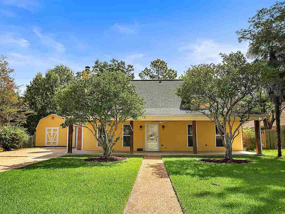 There's plenty of space to be had in this beautiful home featuring a big front porch with 4 bedrooms and 3 full baths. 2324+- sq. ft. can be found in this home, to include a fully functional attached apartment/guest suite with full kitchen, sitting room, bedroom with full bath, and laundry hookups within the massive walk-in closet. This unit can be accessed through the back porch patio & driveway. One additional bedroom can be found downstairs across from the second hall bath with the other two bedrooms and full bath upstairs. Other key features include: fresh paint throughout, new carpet, new luxury vinyl tile flooring in guest suite, detached storage shed/workshop with electric, and an extra spacious backyard. Better call your REALTOR® today, this is not one to miss!