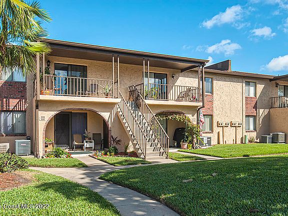 Great opportunity for this spacious 2nd floor deluxe floorplan with 1 oversized bedroom and 2 bathrooms. Sit on the balcony and enjoy peaceful views of the courtyard and pool just steps away. This unit offers updated vinyl flooring, and 2019 A/C and Water Heater. The community has 2 pools and 2 tennis/pickleball courts. HOA includes cable, internet, water, sewer, trash, exterior maintenance, and more. Easy access to I-95, shopping, restaurants, medical facilities, and groceries in this ideal West Melbourne location.