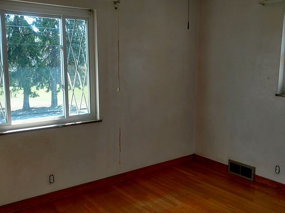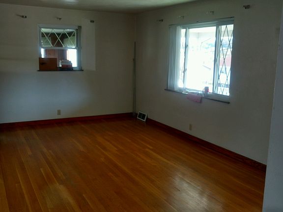 2 beds, could be 3 extra room downstairs, all wooded floors, plaster walls, dining room, bath room, kitchen portable dishwasher, gas stove, no frig. whole house ac and gas forced heat, 1/4 bath in basement and a shower. newer roof newer windows and hot water tan and furnace, glass block windows in basement, washer and dyer. a lot of yard.