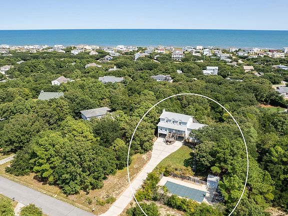 LOCATION! LOCATION! LOCATION! Situated on an elevated lot that is just over an acre this home has so much to offer! Nestled in the highly sought-after Chicahauk subdivision, this property offers an incredible lifestyle for families, second home buyers, or those looking for a rental property. The main floor offers a spacious living/dining area, convenient kitchen, large laundry room, a second living area, one bedroom and bathroom and plenty of deck space. Moving upstairs you'll find three bedrooms including one primary and a hall bath. There is a large unfinished storage space on the lower level plus a finished room for whatever your heart desires! Across the carport is yet another storage space, perfect for bikes, beach gear, tools, etc! Lots of outdoor living space including the many decks, a back yard that is a blank canvas and of course the pool! Surrounded by trees, turn the backyard into a private landscaped sanctuary w/ a garden or make it an outside game room with volleyball, bocce ball and cornhole! The pool is in such a great location - surround by trees, it's secluded and can't even be seen from the road! A convenient path nearby ensures a quick walk to the beach or drive and park at one of the many beach accesses. And if we haven't said enough about the location, the road ends in a cul-de-sac so there is very little traffic! Enjoy access to Chicahauk’s numerous amenities, including beach access, tennis courts, a playground, and a network of walking paths that weave through the community. For a small fee, join the Southern Shores Civic Association’s racquet club to enjoy pickleball courts just down the street. This has been a very well-loved family home for many years but is now ready for it's next chapter!