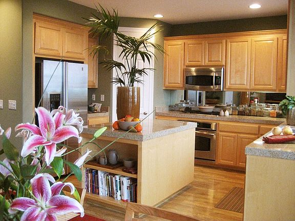 Views of the Brickyard Marina, Bay Bridge and Angel Island. A natural spring fed pond. . Downstairs Den, cork floors, vaulted ceilings in living room, custom mantel, wood shutters. Upstairs South facing Master Suite. A must see Tri Level home!