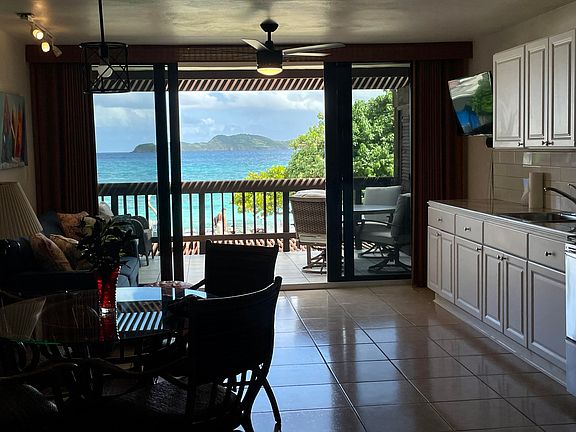 THIS ONE IS UPGRADED! The crystal clear waters are sparkling the sun is shining. All this condo needs is you. Just steps to the water's edge. Close to all the amenities, yet still quiet and relaxing!! You will step out of the condo, facing the amazing blue waters of Sapphire Beach's Marina in your covered porch. You're on the sand and on your way to the water a few more steps away. Includes the use of the resort pool & beach chairs. Lots of parking, 24-hour security & on-site manager. Three Restaurant, Coffee Shop, Bar & Water Sports on property. - laundry close by on property -security 24/7 -new beachfront roof top dining coming soon