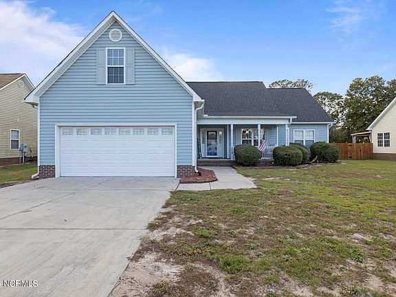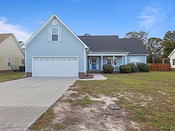 Seller will allow a loan assumption of his VA loan of 2.25% to qualified buyer who can restore his entitlement. If cooking and entertaining outdoors in your patio kitchen is appealing to you and your family, look no further than this home in Catherines Crossing. Privacy for your outdoor gatherings, it has a fully fenced in back yard and a storage building. A 3-bedroom 2-bathroom split floorplan with a FROG (FINISHED ROOM OVER THE GARAGE) that has a closet. This home will be the place for you. All stainless-steel kitchen appliances less than two years old remain. The washer/dryer and the beer fridge in the garage will also be included in the sale as will all the storage shelving in the garage. There's an eat in kitchen and a separate dining room that may serve as an office or multi-purpose room. You will be located in close proximity to Camp Lejeune MCAS and about a 10-minute drive to Jacksonville but without the expense of paying city taxes of Jacksonville.