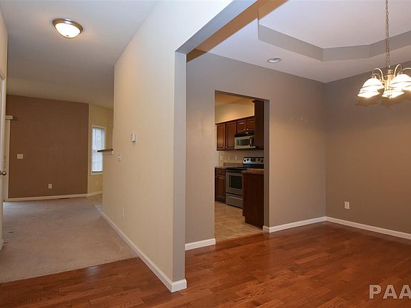 Lovely 4 bedroom, 2.5 bath in East Peoria's beautiful Stonewood Subdivision. Amenities include; large front porch, hardwood flooring in entry dining room and office/den, Kitchen has informal dining and breakfast bar, 4 generous size bedrooms, master suite offers walk-in closet-double bowl sinks, full unfinished walk- basement ready to finish, stunning wooded lot with plenty of room to play and explore.
