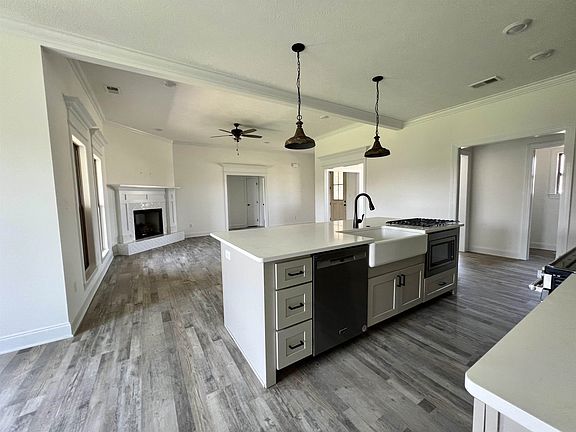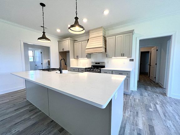 4 BR 3 BA; Large corner lot;Covered front and back patios;Cedar shutters and columns;Oversized side entry garage;Gas fireplace, stove, and heat down;LVP flooring everywhere except stairs;Hardwood tread stairs;Tile walls in master shower with separate soaker tub;Tile to match backsplash around fireplace face and hearth;Sand Shaker cabinets throughout with Bianco Aspen Quartz Separate laundry connected to master closet;Separate pantry and butler's pantry;Oil Rubbed Bronze hardware and plumbing;50 gallon electric water heater;