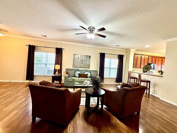 Great Home Ready for New Owner!!!! New Roof 2024, HVAC 2022, Water Heater 2023, Fresh Paint, New carpet and more. This single level, 3 bed and 2 bath split floor plan home is spacious and bright. You will walk into a huge family room great for entertaining. The kitchen offers ''42 oak cabinets, beautiful backsplash and area for a breakfast table. Double glass doors to look out in the backyard featuring a small patio area and a 6 ft white vinyl fence for privacy. The owner suite is large and perfect for a king bed and and extra room for a chair to sit. The ensuite offers a large garden soaking tub, vanity and separate walk in shower. There's a large walk in closet lots of shelving. Two other bedrooms with great space. Home very close to the sought out Nexton area without the price!!