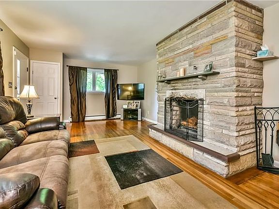 Nestled on 2.5 beautiful acres in Bradford Park! This brick ranch home offers hardwood floors throughout, stone wood burning fireplace in the living room & updated bathroom on the main level. The large basement provides another wood burning fireplace & brand new full bath! Minutes to Cranberry Township & turnpike. Heating system updated in 2016. Privacy & convenience!