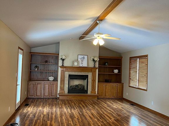 The home backs to a field and includes a covered concrete patio to enjoy in the warmer months, raised garden boxes, as well as an attached 2-car garage.