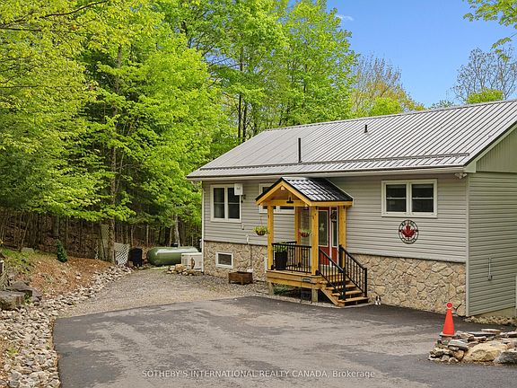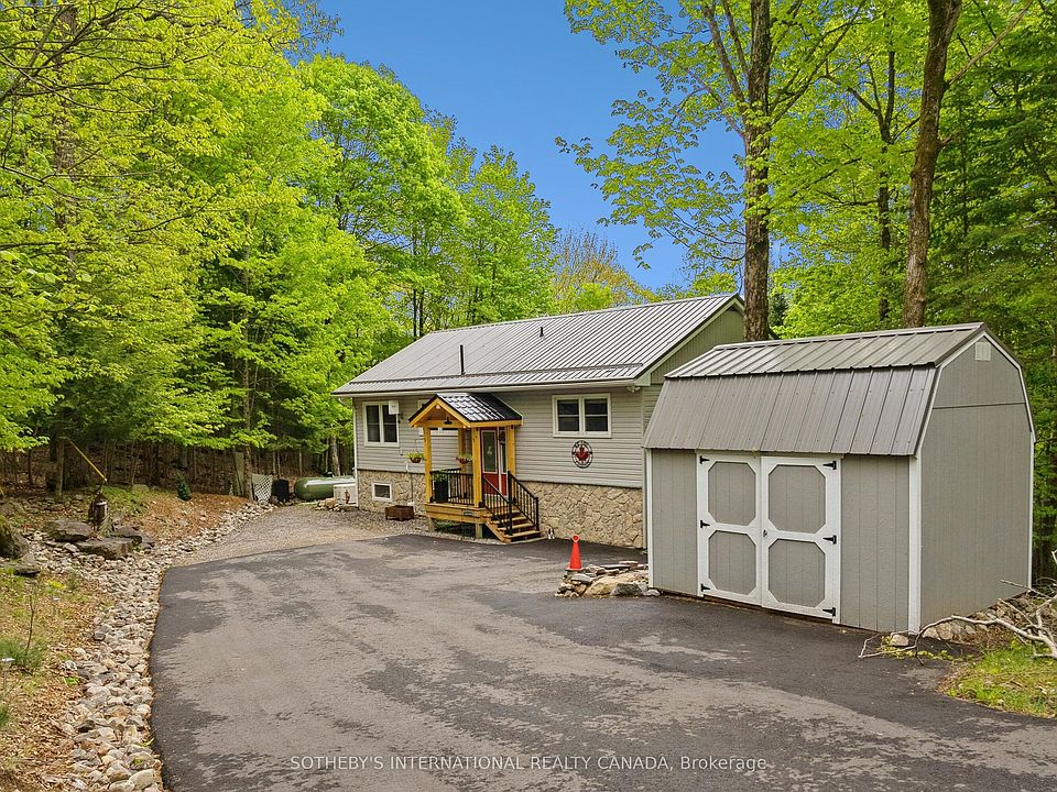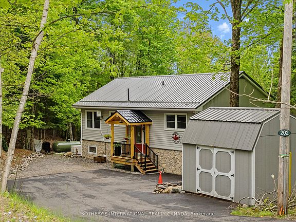 WELCOME TO 202 SUNNYSIDE STREET! Haliburton Village's most sought after community. Sitting on .66 acre lot, surrounded by forest and nature while still being walking distance into town. Fenced for pets. In 2004 this house was lifted and a lower level 1 bedroom suite added doubling the square footage to over 1800 square feet of total living space. A new septic system was installed and all work completed with permits and signed off. Bright and airy, the main level features 2 good sized bedrooms and a 4 piece bathroom. A good sized kitchen, living room/dining room combination and fabulous walk out to a large deck with sunny south exposure. Lower level features a second kitchen, 3 piece bathroom, plus additional bedroom and family room. With direct access from the main level, use this space personally or potential in-law/ rental opportunities. Surrounded by trees and nature, you feel like you are sitting in a tree house. The lower level is also incredibly bright with above grade windows and walk out to another deck, outdoor living space. The current owners over the last few years have invested significantly on exterior updates and mechanical systems. A new covered portico and front deck at entrance way, stone accents on the front of the house, steel roof, stone steps on each side of the house to the rear yard, paved driveway and large shed have really increased this properties curb appeal. A full Generac system installed, oil furnace removed and new forced air propane furnace and central air conditioning added. A very energy efficient home to operate and reasonable property taxes make this property especially attractive. The property has an open permit to build a one car garage and have building plans to share with new owner. Vibrant Haliburton Village community with great services amenities & hospital. Year round outdoor activities such as hiking, skiing, snowmobiling, boating/fshing at nearby lakes make this a great community to live year round.