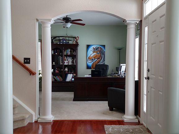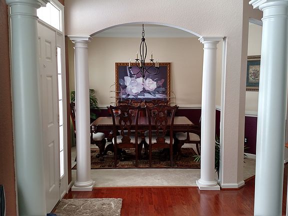 Beautiful Napolitano home! The formal dining and living room greet you as soon as you enter the door, leading to the large kitchen w/ granite counter tops, huge 6ft island and 2 pantries! The kitchen opens to the great room w/ gas fire place. 3ft was added to make the bright and inviting sunroom and kitchen larger. 4 BR and 3 FULL baths upstairs. Incredible Master BR and bath, huge walk in closet, soaking tub w/ separate shower. 3 car garage w/ finished room above, a ton of parking space! Large yard equipped w/ sprinkler system. Incredible community, just minutes from the VA line!
