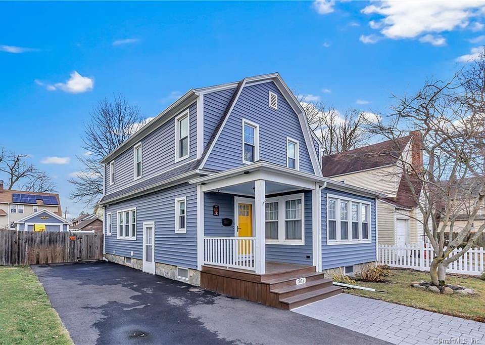 Charming updated colonial on a cul-d-sac with a covered front porch and rear patio. Home offers hardwood floors, ceiling fans in all rooms, custom radiator covers and kitchen with granite counters and tiled back splash. Pocket doors from the dining room can be utilized to separate a sunny and heated den or office as a seventh room. All windows have been replaced as well as the roof. The driveway was recently repaved and exterior vinyl siding installed. Move right in and enjoy this truly move in condition home and everything it has to offer. Video cameras exterior of home.