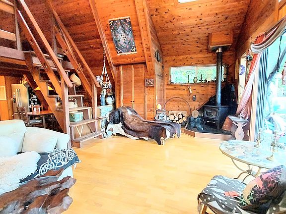 Quintessential A-Frame cabin in the woods! Less than 10 minutes from the highway with easy, paved access, sits this up-to-date cabin with a classic A-Frame design. A newer metal roof and wood siding give the cabin good bones for its new owner. One-bedroom, detached office, one bathroom and a cozy loft creates usable space in this 1,475 sq. ft. retreat. The home includes a full kitchen and dining nook, open living space with a cozy wood stove and a wraparound deck to take in the wooded views. Nestled on a 1.7-acre lot, you will have a private drive as well as a beautiful garden area and two outbuildings. A hot tub sits in the backyard among the garden to enjoy while gazing at the stars and towering pines. The home includes an abundance of skylights, a bay window and a large slider that allows light into the comfortable living space. Knotty pine ceilings and heated oak floors bring warmth and character to the home. PG&E power, a forced air furnace, and a well producing spring provide convenience in the beautiful Salmon Creek woods. Little touches like a hand painted sink from Mexico, Bosch gas stove and landscaped garden pond make the home unique and inviting. You will find the Salmon Creek neighborhood friendly and welcoming. This home will reward you with raw nature and a cozy atmosphere that will have you never wanting to leave. Perfectly priced, catch this opportunity while it lasts!
