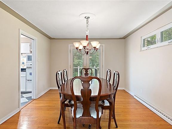 This mid-century ranch sits on a one-acre corner lot in a highly desirable Moon Township neighborhood. The main floor features a large living room bathed in natural light from the oversized windows, centered around the original stone fireplace. The home's dining room is spacious enough to host holiday dinners and provides easy access to the large rear deck. The kitchen is a home chef's dream - bright and roomy, with tons of cabinet and counter space. The main hallway leads to the home's three bedrooms and a full bath. The master bedroom features large windows and a mirrored closet. The master en suite includes separate tub and shower, double vanity, and walk-in closet. Gorgeous hardwood floors throughout. The lower level includes two finished rooms, including a game room with a full bath that could double as an in-law suite. Located in the award-winning Moon Area School District.