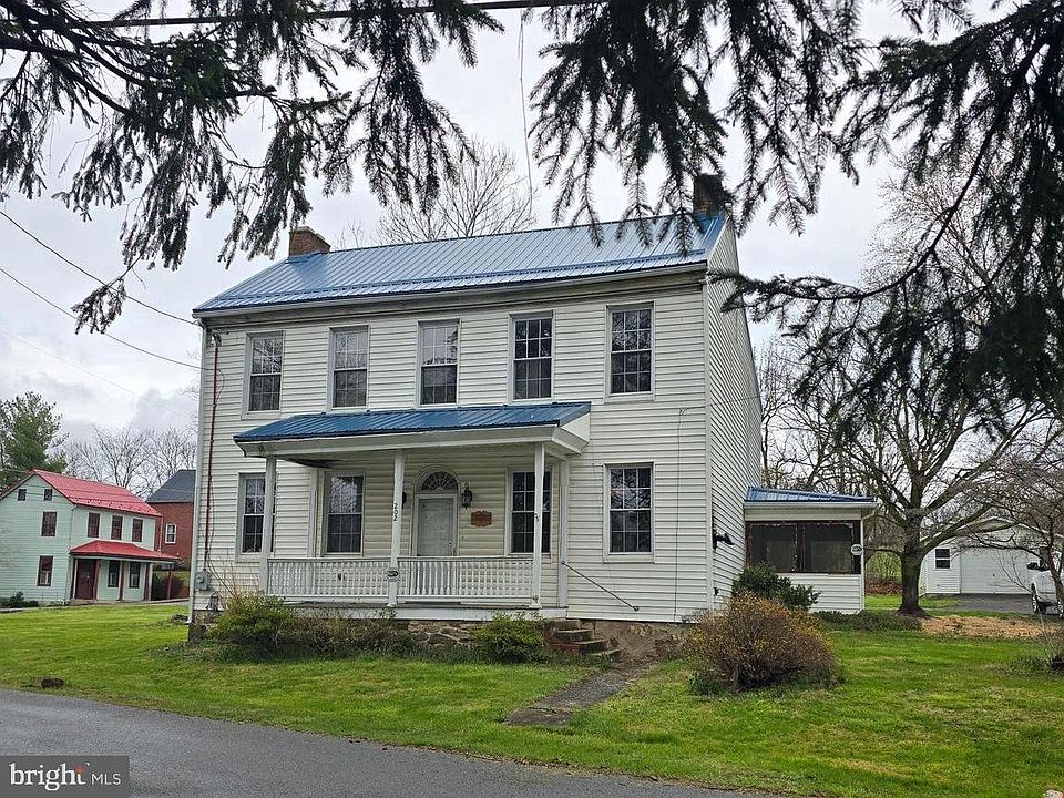 Large historical colonial priced to sell with newer metal roof. This home can easily be a 4 bedroom 2 bath home. Enough space to allow your vision to cut loose as you bring this home back to its full stately potential. Two large rooms on the main level with built in cabinets and shelving. The kitchen has space for dining in the adjacent room with plenty of pantry space. Screened in side porch from the circle driveway. Two oversized bedrooms on the upper level with a full bath and another bedroom off to the back. This is the same location for the laundry room on the upper level. The garage in the back has electric and pedestrian door for easy access to the garden area. This home is being sold "as-is" at a reasonable price to allow you to make the changes and upgrades that fit your specific needs and desires. The large lot may afford an additional building lot for the the investor or investor/builder. Make your offer today.
