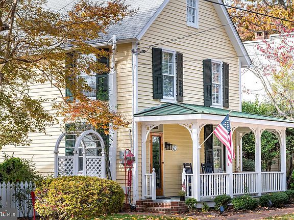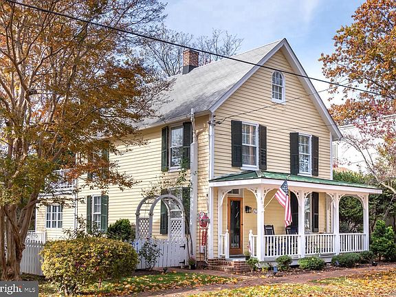 Oxford - Open floor plan in this lovely 3 story yellow Victorian with wonderful water presence and large completely fenced private back yard with great shade trees. Brick patio in private side yard. Front and back porches with sunset views from the waterside balcony. Four bedrooms, two baths, with hardwood floors throughout. First floor bedroom with adjoining bathroom. Newly roofed 2nd floor balcony, entire property newly fenced.