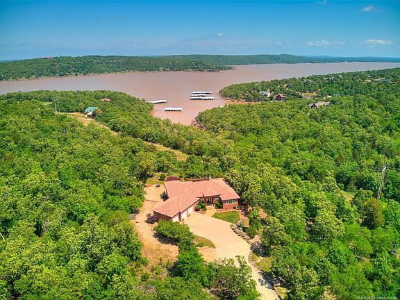 STUNNING LAKE VIEWS!! COMPLETE WITH PRIVATE GUEST HOUSE QUARTERS! Enjoy expansive lake views from anywhere in the home. Complete with gourmet kitchen, outdoor bar & kitchen, and all the room to entertain. The home sits on 2.5 acres with additional adjoining property available. Quick & easy access to the shoreline with well maintained boat slip available. This home is the perfect lake retreat for the whole family to enjoy! Location GPS: 35.288937, -95.504803.