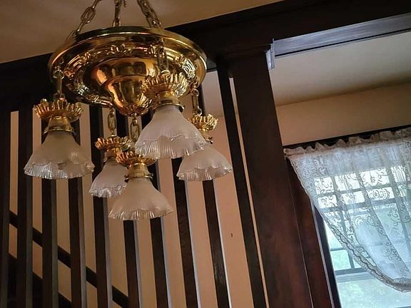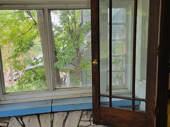 Spacious home nestled at the base of the bluffs in historic district. Your own private retreat surrounded with a variety of native flowers. Great bones in need of cosmetic updating featuring original walnut woodwork, hardware, wood floors. Three season heated room with leaded doors offering a great view. Original period light fixtures and hardware , including carnival glass and brass and gas sconces. 4 BR, 1.5 BA (.5 bath on main), Library with built in bookcases, window seats and back steps off kitchen. 2nd floor sun porch. Useable attic for storage. Full unfinished basement with laundry, storage room and cold room. One car garage built into bank. Estate being sold AS IS.