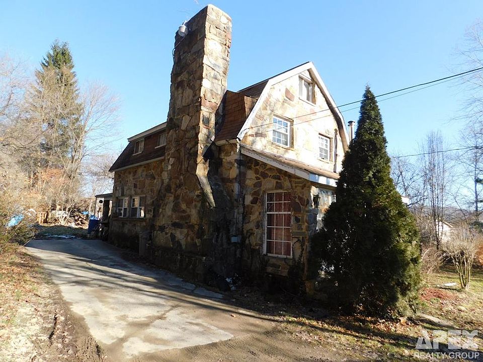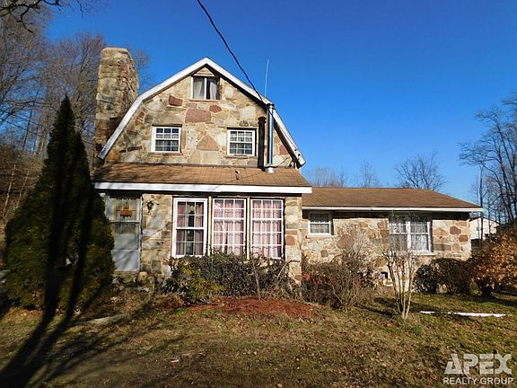 1 1/2 Story stone home with 4 acres, partly wood with stream. 2 bedrooms with living room, family room, kitchen and laundry on 1st floor. 3 zone oil furnace, 2 wood stoves and a propane fireplace. Covered porch.