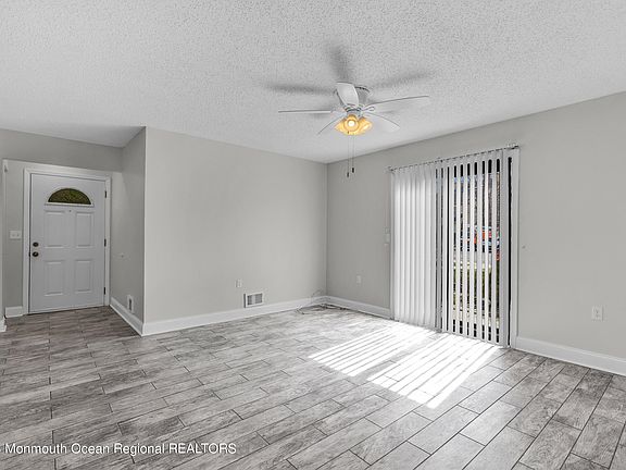 all new windows, new sliding glass door, all new six panel doors and porcelain tile thru-out. Home offers an open concept, great for entertaining, beautiful kitchen w/white shaker cabinets, black granite countertops, tile backsplash, stainless steal appliances, dining room, living room w/sliders that open up to a patio and beautiful garden w/underground sprinklers. Spacious Master Bedroom with WIC and access to a spa like bathroom w/ an oversized shower and separate laundry area in unit. Community offers: pool, basketball, tennis, jogging and playground. Convenient to I-195 Rt 9, GSP & NJ Turnpik
