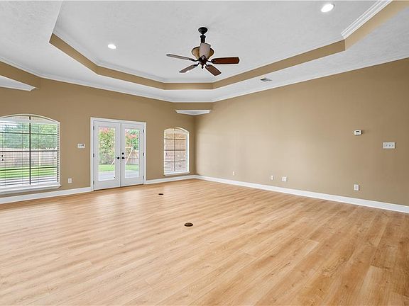 WHAT SAY YOU? If quality, like-custom construction, updated paint and flooring and a convenient location are important in your home search, this 4 BR, 3 bath West Pointe on the Bayou S/D home checks all the boxes. Meticulously updated w/wood plank flooring throughout and fresh neutral paint colors in every room during June 2024, this special property offers strong new construction vibes but w/ all the extras like plantation shutters & blinds, new double wood front doors, privacy fenced yard, colorful/diverse landscaping & soothing cobalt-blue water fountain highlighting circle drive. Easy entertaining is a fun part of the life here w/an open floor plan, high ceilings and formal & informal dining areas flanking the "chef's" kitchen which is wrapped in a double-tiered granite serving bar that can seat a crowd. Other amenities include plentiful storage, pantry, central island with 3rd sink & stainless appliances including microwave, elevated dishwasher & gas range/oven. Main living area is highlighted by raised gas log fireplace & double French doors leading to oversized covered patio with gas jet, privacy fenced yard with separate dog yard and built-in paved firepit. Three bedrooms including primary suite grace one hallway and the fourth bedroom, located on separate hallway, adjoins laundry room with its deep utility sink and plentiful storage. The oversized owner suite has tiered ceiling, substantial closet space with drawers and shelving, double sinks, separate shower and soaker tub. The lions head cabinet pulls lend a charming touch. Backyard is primed for future swimming pool with underground electrical lines located around the perimeter of yard by the lot lines. Oversized dbl garage can accommodate large trucks with hitches and more. Sprinkler system in parts of front yard. Hot water heater (electric) & air conditioning compressor & more replaced June 2024. Alarm w/ cameras can be activated by new owner. Alexandria utility bills average appx $250/mo. Built 2010