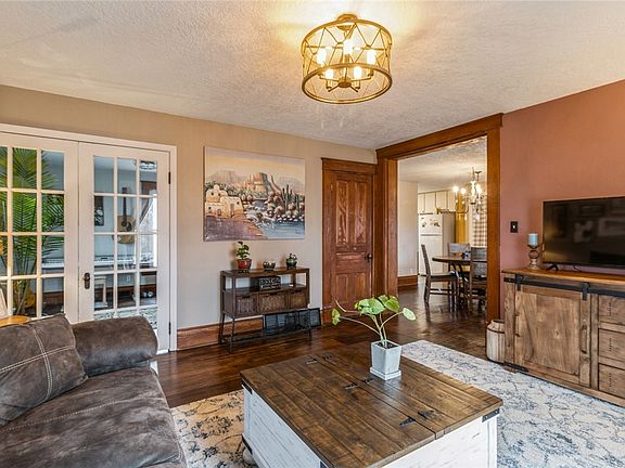 Darling 1 1/2 story home in the heart of Casey, Iowa. This charming small town is right off I80 and is surrounded by rolling hills and breathtaking views. The large porch welcomes you home and is a perfect spot to relax and take in the beautiful scenery. The main level features refinished hardwood floors, large dining room, living room, & kitchen. There also a multipurpose room with French doors that would make a great office or 1st floor bedroom! Full bath has been fully renovated and there is a first floor laundry for ease of living. 2nd floor offers 2 more bedrooms. Huge lot takes up the whole corner of the block and is fenced with updated landscaping. Newer windows & siding. This home has been well loved and ready for new owners!