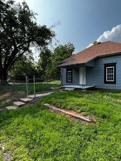 This charming 2 bed 1 bath would make a great rental property or a place to call your home. The living room is open to the dining room, so this area can be used as one large room. The utility room could be used as a third bedroom or office space. It has a large fenced-in yard for kids or pets. The home is move in ready. All new electrical wiring and fixtures, new plumbing, new AC unit, new heating coil, new stove, fresh paint, and wood floors. All of the big items have been taken care of for you. Storm shelter right out the back door. Carport and metal shed that is big enough for a car or could be a shop. Home has central heat and A/C and there is also an additional gas wall heater in the dining room that can be used on cold winter days.
