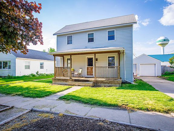 Beautifully remodeled turn of the century farmhouse style home in a small town setting with many updates. This 3 bed, 2 bath home is move in ready. Updates include main level laundry, bath off the master bedroom and flooring. This great backyard with above ground pool is ready for summer entertaining. Garage has been insulated and has heating and cooling units, currently being used as a workshop. Extra exterior storage shed of 12' X 16'. New furnace in 2019.