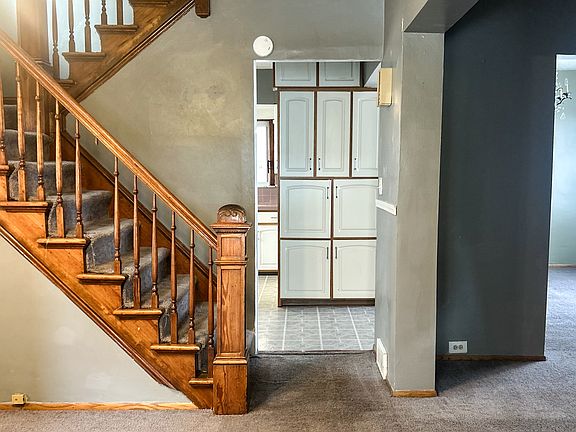 Sizable home with carport on small corner lot in Mahoningtown. Foyer with handsome oak banister. Living room features decorative fireplace with electric hookups. Formal dining room with chandelier. Kitchen sports generous cabinet space, pink tiled countertops, and peninsula. Dishwasher included. Rounding out the first floor is an office and bathroom with pedestal sink and shower. Upstairs are 3 well-lit bedrooms and a second full bath with tiled tub/shower combo and linen closet. Walk-up loft style attic could be used as a fourth bedroom. Unfinished basement outfitted with laundry hookups, utility sink, toilet, and shower stall. Attached single-car carport and paved driveway parking. No application fee. Partially refundable security deposit. Utilities are renter's responsibility. Up to 2 pets allowed with $250 nonrefundable deposit and $50 monthly fee per pet.