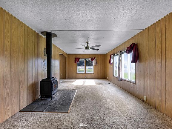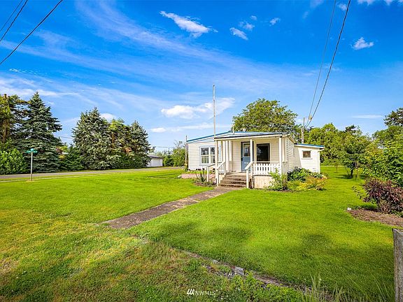 With a little elbow grease, this puppy's tail will be wagging in no time! Step into this light and bright 3 bedroom, 2 bathroom manufactured home with recent kitchen upgrades, including new appliances, and opportunity/possibility for so much more. A cozy gas fireplace is front and center in the living area, which flows into the space for potential formal dining off the partially remodeled kitchen. Walk-in closet and bath off of the large primary bedroom. Spacious detached 2-car garage/possible shop space. All sitting on a flat, sunny 8,276 sqft corner lot in the heart of Nooksack, kitty corner from City Hall.