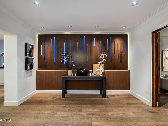 This beautiful 4BR + 2 Offices/4BA, 5,770 SQFT home sits on a flood-irrigated ACRE lot and is surrounded by mature trees on all sides of the home giving you a great sense of privacy. This unique and modern estate has been completely renovated over the last 10 years, including updates such as new bathrooms, new wool carpet flooring in the bedrooms, newer kitchen with double ovens and a built-in Fridge by Sub Zero, and a huge island great for gathering and entertaining. The Primary Suite Wing features a gorgeous private office, sitting area, additional en-suite bedroom, workout area, contemporary bathroom separate soaking tub and shower, and separate exit to backyard. Laundry Room has been completely redone by California Closets, complete with a gift wrapping station, making it a perfect space for arts and crafts and staying organized. An impressive OWNED 12kw Solar System was installed in 2019, making for much lower electric bills! The large backyard has a newly built pool & spa, with the pool being one of the largest residential pools done by Rondo Pools. The heated pool also comes with an electric pool cover that covers both the pool and spa, making it easy to keep them at a comfortable temperature year-round. Rounding off the backyard is a large playhouse by Rainbow Systems. Rancho Solano is one of the premier neighborhoods in North Central Phoenix and it is rare for homes to come on the market here - It is truly a generational neighborhood. In just a 5 minute walk, you'll arrive at the local Farmer's Market, or in a short bike ride, you're right next to some of the best restaurants Phoenix has to offer, including OHSO, Windsor and the new Henry, which is coming soon!