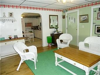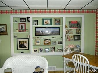 NEW PRICE Adorable Cape!! Waiting for new owners! Home has been well cared for and is very clean. Beautiful eat-in kitchen has been remodeled, with granite tops and newer appliances. Living room has built-in shelving and hardwood flooring. 1St floor family room has large stone fireplace with a pellet stove insert, hardwood flooring and slider to patio. There is a first floor bedroom and full bath. 2nd level has 3 bedrooms, master has an awesome view of the Lehigh Valley through a bay window. Basement has a built-in one car garage, plenty of storage, and is plumbed for a bath. Home has an enclosed rap around porch, with many possibilities. There is a detached heated 2 car garage with attic storage, auto openers, and 220 line. This is a very neat property, don't miss out!!