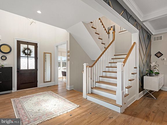Welcome home to 202 Walnut Tree Lane in the desirable community of Troutbeck Farm in Malvern. Award-winning Moser Homes built this lovely home in the highly-ranked Great Valley School District. This home is the best of both worlds as it's newer construction (2022), yet it is move-in ready so there is no long wait period before moving in. Enter this home into a welcoming foyer with high ceilings throughout, an open floor plan, and beautiful hardwood floors. The lovely living room is accented to the right by a wood-feature wall, fireplace, and crown molding. To the left is the formal dining room with wainscoting, crown molding, and a chandelier to compliment your entertaining with family and friends. The inviting family room is straight ahead from the foyer, filled with natural sunlight, a wood-feature wall, and a stone mantel with stone surrounding the fireplace and highlighted with a wood beam ceiling. The large office is located off the family room. There are two sets of french doors leading into the office and a slider leading to the private rear deck. This spacious room offers comfort and privacy for working from home. The magnificent gourmet kitchen is open to the family room. This kitchen boasts gorgeous quartz countertops with subway tile backsplash, custom soft close cabinets, a large pantry, high-end Bosch appliances with gas cooking, and a large center island with pendant lighting for all your entertaining needs. There is a beautiful boxed shiplap ceiling over the kitchen island. The generous-sized yet cozy breakfast room sits at the rear of the kitchen and overlooks the tree-lined backyard with sliders to the oversized deck. A favorite feature is the butler pantry located between the kitchen and dining room with a wet bar and Bosch beverage cooler. There is plenty of storage and a beautiful custom backsplash that complete this space. This is a perfect compliment for entertaining. The first floor also has a powder room with a large vanity. There is a thoughtfully designed mudroom with shiplap, a large closet, with a bench, and built-in cubbies Upstairs, the primary bedroom is warm and spacious with plenty of natural light and two large walk-in closets. The closets have been custom-finished with shelving and drawers. The primary ensuite has a separate soaking tub, a tile shower with dual showerheads, two individual vanities, and a linen closet. Three additional bedrooms are on the second floor. One bedroom has a private bath, perfect for guests. The other two spacious rooms share a bath between them. All have plenty of custom closet space. The laundry room with a utility sink and cabinets is also located on this floor. The lower level is nicely finished and can be used as a playroom, gym, or an additional family room. There is also a spacious, unfinished room for all storage needs. A powder room, already plumbed for a shower if desired, finishes the lower level. The location of this home is convenient to shopping, restaurants, and major roads and transportation leading to West Chester, Malvern, King of Prussia, Philadelphia and more. It is a must see! (See list of upgrades in documents)