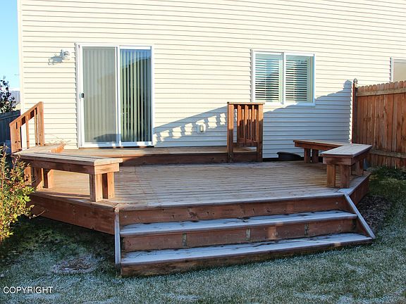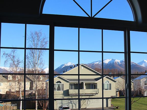 Meticulously maintained home with a magnificent year-round view of the Chugach Mountain Range! Private, fenced yard has a beautiful west facing deck. Vaulted living room ceiling with a lovely two sided fireplace that can be enjoyed in the dining and kitchen areas as well. Primary bedroom suite is on upper level. Low monthly dues. Seller is providing a 1 year warranty!
