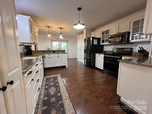 This home offers so much! 3 bedroom, 2.5 bath on 5.22 private acres with 2 creeks in Mountain View Acres Subdivision in Rutherfordton. Master Suite on main level with fireplace, newly remodeled bathroom, his and her sinks, walk in shower and soaker tub. Main level also has a formal dining room, Office/Flex room and Large family room that offers open space, sliding glass doors to deck and covered porch on back of home. Kitchen with pantry, granite counters and New appliances in 2022. Upstairs has 2 bedrooms, 1 newly remodeled bathroom, another Office/Flex room and a walk in Attic for storage. Laundry room is in mud room off garage that is attached to home. Basement has inside and outside entrance and can easily be finished as it is heated and cooled already. There is also a newly built 20x30ft detached garage and a 24x32 Pole barn/tractor shed. New Roof January 2022, Septic was pumped in 2022. Don't miss this one! One year Home Warranty at closing for a Buyer