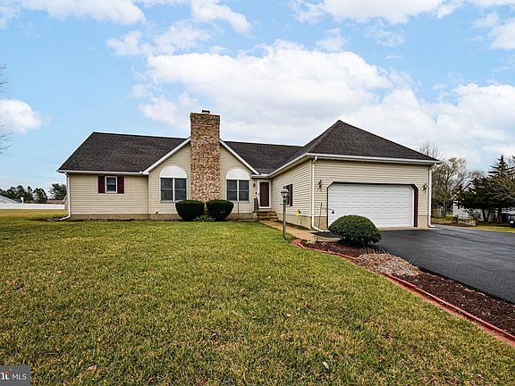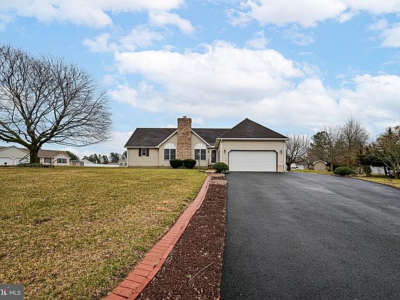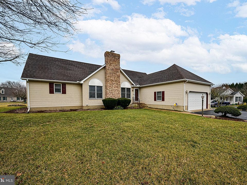Open House is CANCELLED. Straightforward contemporary architecture and meticulous care make for a restful home. Nestled on a large corner lot in the popular Kent County community of Tamarac, this thoughtfully embellished, and gently lived-in Ranch-style home has wonderful curb appeal and finishing touches that would amaze the most discriminating buyer. Some of the many notable interior highlights include freshly painted walls throughout, an eye-catching, wood-burning brick fireplace with a raised hearth, a deep-set tray ceiling adorned with dentil crown molding, chair rails, ceiling fans, recessed lighting, and numerous spaces sizable enough for the largest of gatherings! In addition, the generously sized open kitchen boasts stainless-steel appliances, ceramic-tile flooring, handsome wood cabinets, and complementary quartz countertops. French doors lead from the adjoining dining room to the impressive tiled-floor sunroom showcasing three sets of exterior sliders that lead out to the wrap-around deck with a retractable striped awning above! A wide staircase leads down to the expansive grassy yard. Not to be overlooked, this seemingly endless property also comes with a private primary suite, two secondary bedrooms sharing a full-size hall bath, a conveniently located laundry closet, a terrific walk-out finished basement, tons, and tons more of storage areas, and a two-car garage with an extended driveway.