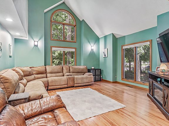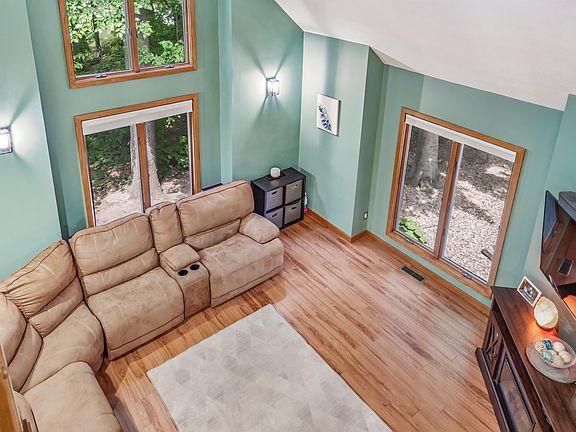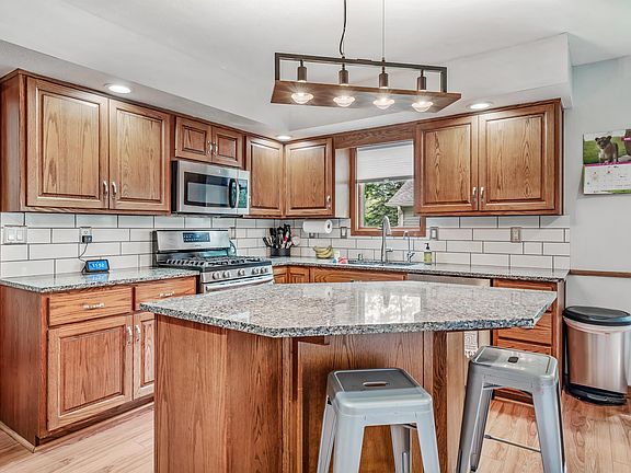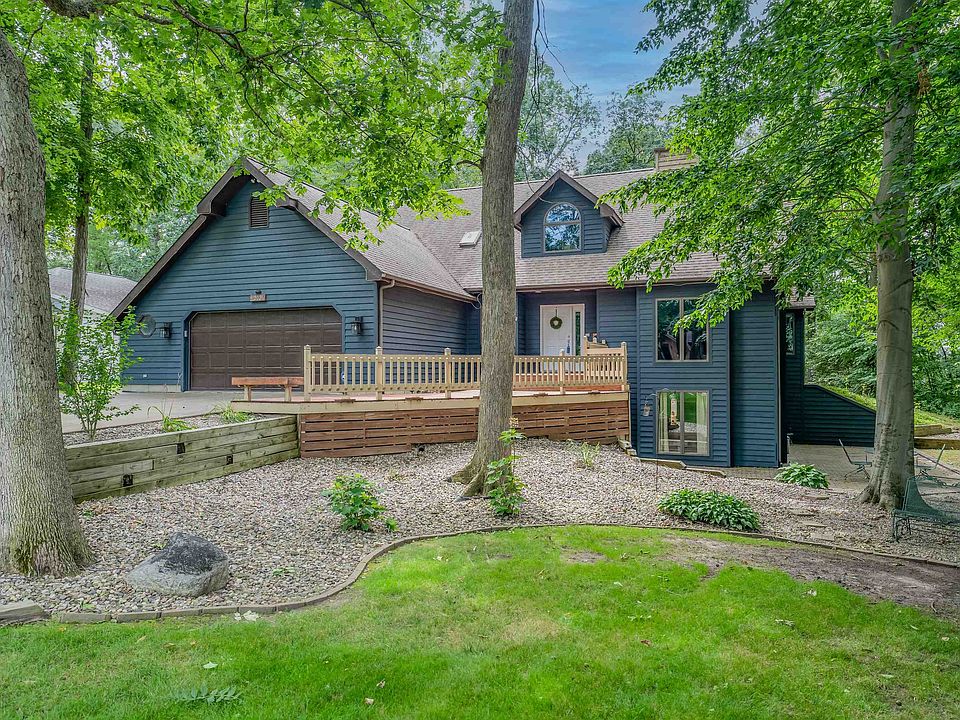 Welcome to this contemporary 1.5 Story in Timber Ridge Neighborhood. Close to shopping and close to everything! This 5 bedroom home is spacious inside and out and offers a back yard oasis that is sure to please the new home owners. Back yard is fenced, has patio, deck and pergola over the patio and fire pit area. Beautifully landscaped in the back as well as the front yard. Partially wooded lot. Inside this home you will enjoy vaulted ceilings in the great room as well as the 3 season room. THe master suite is on main level and offers a spacious master bathroom as well as access to back deck and back yard from the master. Kitchen is updated with backsplach and granite countertops and newer appliances and offers a breakfast nook as well as formal dining room. Main level laundry room also! Upstairs you will find 4 bedrooms and 1 full bath. The lower level is a walk out and offers a large paver patio off the french doors to the west side of the home. There is a fireplace in the familiy room as well as 2 unfished utility rooms in the lower level. This home is well cared for and has so much to offer- schedule your exclusive showing today!