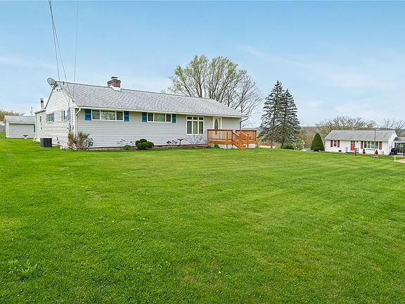 Welcome Home to this amazing 3 BR 2 Bath ranch home in Daugherty Township! This one may check off all of the boxes on your list. This corner lot is spectacular with a huge flat yard, large detached garage and a concrete driveway. You enter the back of the home into a HUGE great room with tile flooring and lots of natural light from all of the windows. The space can entertain the entire family with room for couches, a TV, and even a dining table. There is a galley kitchen with sturdy wooden cabinets, stainless appliances and lots of counter space. There is a generously sized living room with hardwood flooring underneath it as well as all 3 of the bedrooms. There is a spacious, dry, clean basement that could be turned into a finished family room if desired. This home has over 1250 sq feet of living space so there's plenty of room. This is one that you don't want to miss! Lots of potential to make it your own!