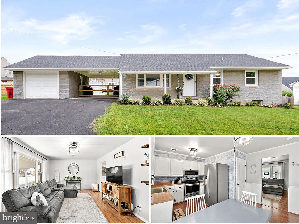 One level living! Renovated & airy. All brick construction featuring 3 bedrooms,1 bath with a front porch or choose to swing in the breezeway while enjoying the fall evenings. Great, level, fenced yard space with a one car heated garage. Covered breezeway for enjoying outside space where you could put table and use for great entertaining space. Two year old architectural roof . Nice floor plan with updated kitchen cabinets, countertops, and SS appliances, new sink. Updated bath. Updated interior doors, hardware, and fixtures. Nice laminate floors throughout. Replacement windows. Finished lower level with a huge family/rec area and carefree luxury plank floors. This is a perfect starter or downsizing home right on the edge of town in quaint Boonsboro. Boonsboro schools. Sellers can not close until NOV. 15 or later.
