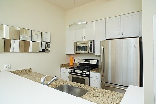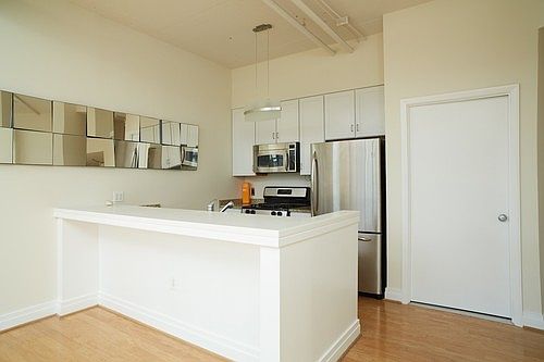 Contemporary industrial feel with floor to ceiling windows, hardwood/concrete floors, custom closets, huge room sizes, balcony, garage parking, secure front desk building and amazing rooftop deck. Truly stunning and available immediately so don't walk, RUN to this one!!