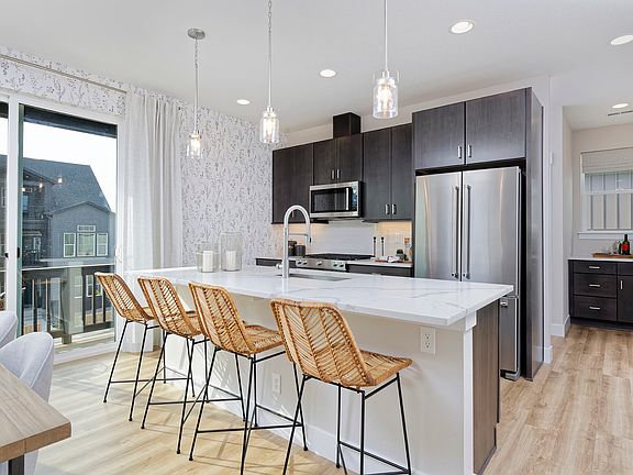 The solar-powered Haven plan has it all! The open floor plan on the Main Living Level has elegant 9-foot ceilings and large windows to let the light in this end-unit home. The spacious kitchen has a gorgeous island with an undermount sink and three pendant lights. Every entertainer needs a grand table for entertaining, and the large dining area in the Haven plan will not disappoint. The dining area opens to both the great room and a 2nd story outdoor living space. Upstairs, this home features 3 bedrooms and includes a large primary suite with volume ceilings, a large walk-in closet, and a primary bath with dual vanity undermount sinks, tile floors, elongated toilet, and a clear glass shower. The DoMore space located on the Entry Level is a creative, flexible room that you can personalize to fit your lifestyle - maybe it's a home gym, your crafting space, or your bike shop! This Haven plan also includes a private fenced-in yard. Additional plan features include air conditioning, tankless water heater, active radon system, and an oversized two-car attached garage with a WIFI garage door opener.All cutting edge efficiency and sustainability features come standard in Thrive homes! Not only is solar included, but this home is also certified Zero Energy Ready by the U.S. Department of Energy. In addition to the top-of-the-line efficiency features, this home also has superior health features! It's both EPA Indoor airPLUS Qualified and LEED Certified, meaning it was built from the