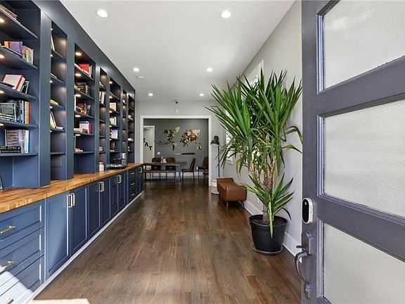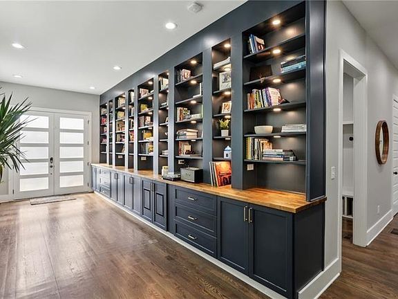 Walk out rear deckOpen floor planHardwoods and bright spacesPlantation shuttersQuiet dead-end streetAmazing floor-to-ceiling built-in libraryDouble walk-in closets