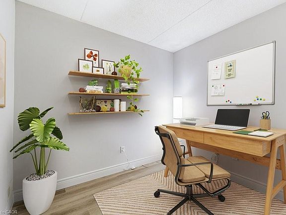 Terrific opportunity in Headon Forest, Burlington! This bright, newly renovated 1 bedroom + den condo features brand new vinyl flooring, a modern updated bathroom, new washer & dryer, and fresh paint throughout. The open-concept layout includes a spacious bedroom and a versatile den—perfect for a home office, guest space, or workout room. Enjoy the ease of a ground-level entrance, making everyday tasks like carrying groceries a breeze. Step outside to your southeast-facing raised balcony, an inviting spot for morning coffee or evening unwinds. With in-suite laundry, a locker, and one underground parking space, this condo has everything you need. Ideally located within walking distance to restaurants, shops, and Tansley Woods Community Centre, with quick access to the 403, 407, QEW, and both Burlington & Appleby GO Stations. A fantastic choice for commuters and anyone seeking a vibrant, connected lifestyle!