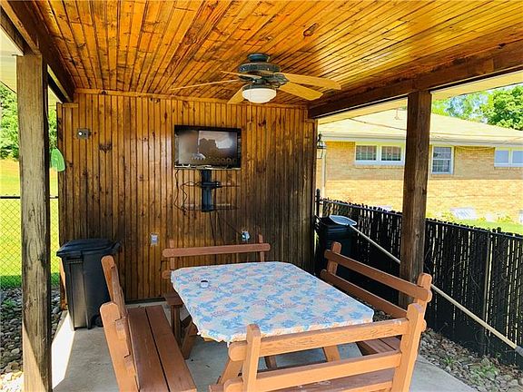 Three bedroom brick ranch with beautiful first floor family room with cathedral ceiling and skylights and access to back yard and pool. This is a perfect home for outdoor entertaining with 14x30 in-ground pool, 8x16 pool house and covered pavilion. Living room/dining room combo with beautiful hardwood floor and gas fireplace in living room. Well equipped eat-in kitchen. Two full baths. Large covered front porch with storage under. Spacious game room on lower level. Shed and gas grill included.