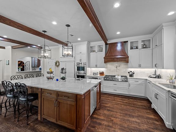 Welcome to your dream home at 2020 Crown Knoll, perfectly situated just seconds from the prestigious Gleneagles Country Club. This stunning 5-bedroom, 5.1-bathroom residence offers an exquisite blend of luxury and comfort in a prime location. Step inside to a grand split staircase that leads to 3 spacious bedrooms, each with an ensuite bath, and a media room. A designer kitchen features a massive island, dual dishwashers, and top-of-the-line appliances. Adjacent to this space is a sophisticated bar and wine cellar. The expansive living room is adorned with elegant wainscoting and ceiling beams, adding a touch of classic charm. A private primary suite features an ensuite bath with a large jetted tub, dual vanities, and a separate shower. The outdoor area is equally impressive, boasting a sprawling backyard with a pool and spa that backs up to a tranquil green belt. Mature trees provide shade and privacy. Don't miss the opportunity to make this home yours!