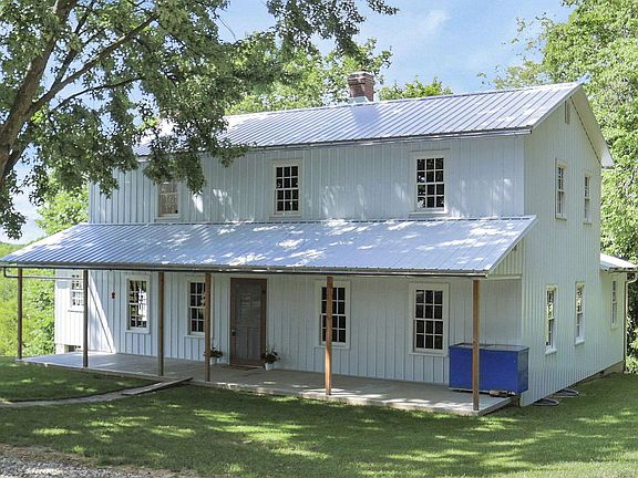 Idyllic mini-farm retreat in the North Fork school district. This traditional, Amish quality-built home (2021), sits on nearly five acres of serene countryside, but is less than an hour from 5 major cities + the Silicon Heartland. The layout features an open main level + a 1st floor master & 4 bedrooms upstairs. Hardwood floors throughout. Step outside to a large shaded front porch overlooking the countryside. There are several outbuildings, including a large barn w/workshop, a garden/canning lean-to, & a chicken coop. Excellent Airbnb opportunity or a personal sanctuary, awaiting your finishing touches. Electricity at the road. Water is gravity fed and supplied by a well. The home is heated by wood & naturally cooled by the mature trees. Price reflects lack of modern systems.