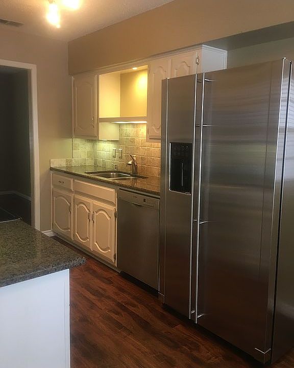 3 bedrooms, 2 full baths home in sought after Prairie Creek attendance zone. Living area with brick fireplace and high ceilings. Recently updated bath and kitchen with granite counter tops, stainless steel appliances, wood laminate floors, and brushed nickel fixtures throughout. Fenced yard with drought tolerant plants and wooden play set in back. Detached garage.