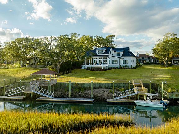 Custom built by PBC Design+Build, 2020 Deep Creek Run offers the finest combination of panoramic views, craftsmanship, water frontage and location. With 72 feet of brand new dock and bulkhead in a protected and dredged canal with deeded dredge rights, this is one of the best opportunities for boaters in the region. Better yet, flood insurance is not required on this special property. Stepping inside, you are greeted with views that span across the Intracoastal Waterway to Figure Eight Island, Wrigthsville Beach, the Atlantic Ocean and beyond. The generous layout offers four large bedrooms, two large bonus rooms, and generous space for indoor-outdoor living with a beautiful waterside fire-pit and double-sided fireplace complimenting the screened porch. The owners suite and kitchen are truly one of a kind! The level of fit and finishes leaves nothing to be desired with Z Line and Bio-Fresh appliances, white oak hardwoods finished on site, leathered finish granite countertops, zero entry showers, ipe decking and so much more!