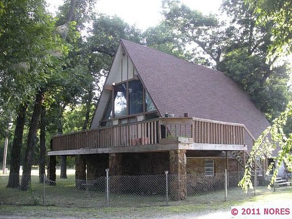 Cute A-Frame nestled in the woods! Easy access to Hwy 75 - minutes to Tulsa. 5 ac (m/l) with pond, fenced and cross fenced. Second set of utility hook-ups on property for another residence.